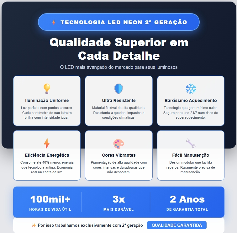 Utilizamos acrílico de alta qualidade e lâmpadas de LED neon para garantir durabilidade e beleza nos letreiros.